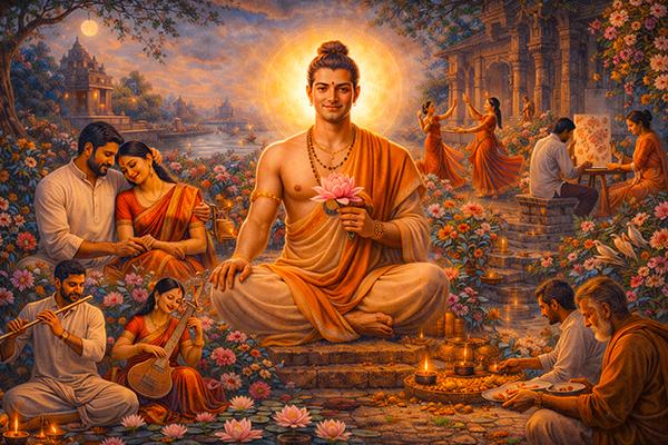 In the framework of the four Purusharthas, kama must be harmonized with dharma and artha. Pleasure pursued without ethical grounding can lead to attachment and imbalance, while pleasure guided by dharma supports well-being and emotional maturity. When integrated wisely, kama contributes to happiness, vitality, and a fuller engagement with life.