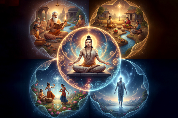 The four Purusharthas-Dharma, Artha, Kama, and Moksha, are designed to function as an integrated and interdependent framework, rather than as isolated goals. Together, they guide individuals toward a balanced life that harmonizes ethical responsibility, material prosperity, emotional fulfillment, and spiritual liberation.