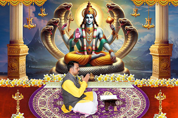 - Recitation of Mantras: The Puja involves the chanting of sacred mantras dedicated to Bhagwan Vishnu. Devotees often recite the Vishnu Sahasranama (1,000 names of Vishnu) or the Hare Krishna Maha Mantra. Chanting these mantras with concentration invokes divine blessings, purifies the mind, and deepens the devotee’s connection to the divine.