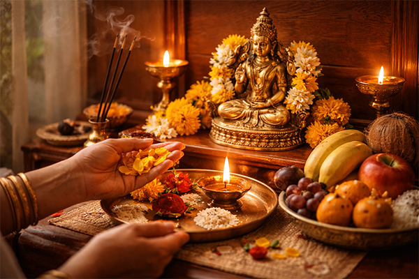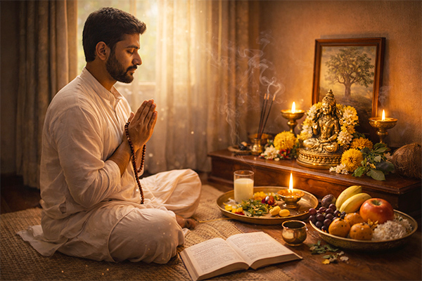 - Avoidance of Tamasik Foods: Starting from the previous evening, abstain from consuming tamasik (impure) foods such as onion, garlic, meat, or alcohol, as they are considered spiritually impure.