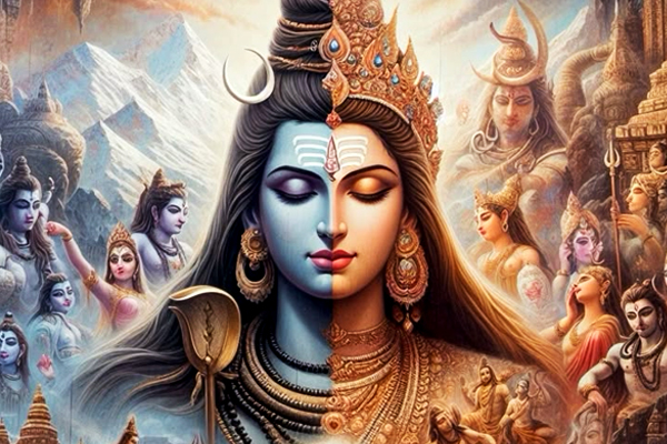 The origin of this divine female energy (Durga) is mentioned in the Shiva Purana. Before the cosmic creations, Shiva invoked Her from His left Half and created Shivloka with Her help. It further states the demonic son of Rambha named Mahishasura once created havoc on Bhuloka (earth) and defeated all the gods of heaven, endangering their existence. After hearing such events, Lord Vishnu discharged a huge mass of light from His mouth that merged into the similar rays emitted from the mouths of those gods. This powerful light morphed into a powerful female deity called Durga who challenged Mahishasura for a battle.