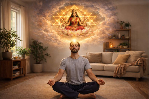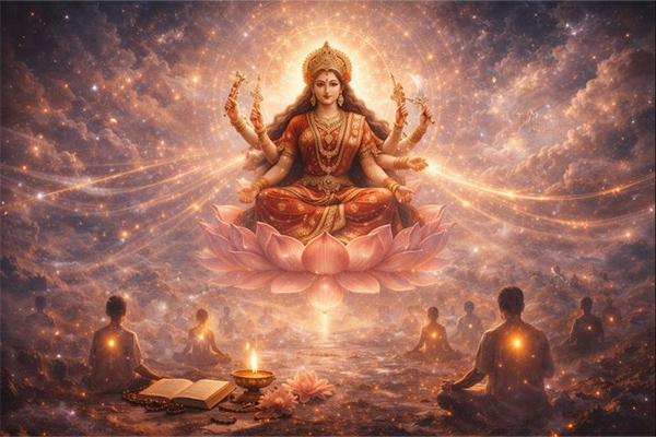 Dhyana (Meditation): Close your eyes and visualize Devi Lalita seated on a lotus within the Sri Chakra. Imagine her radiating divine light, holding her symbols of protection, wisdom, and grace.