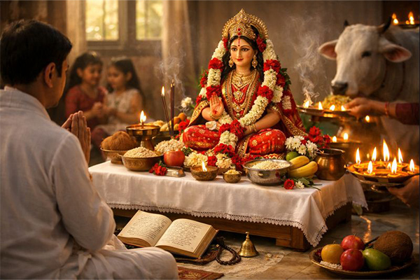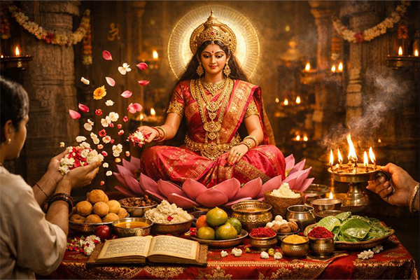 The puja (worship) commences with the application of kumkum (vermilion) to the deity, followed by offerings of rice grains (akshat), flowers, and sweets, particularly those made with milk, such as kheer. Devotees then recite sacred texts, including the Lalita Sahasranama , which enumerates the thousand names of the goddess, and mantras dedicated to her.