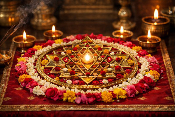 The inclusion of the Sri Chakra Puja elevates the spiritual depth of Lalita Jayanti, aligning the devotee with Devi Lalita’s cosmic energy and fostering inner transformation, harmony, and enlightenment.