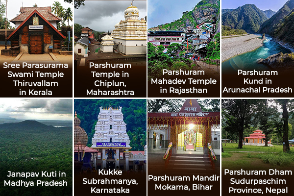 Among the most significant Parashurama temples in India is the Sree Parasurama Swami Temple at Thiruvallam in Kerala, a 2000-year-old shrine revered for its unique rituals and as a site for ancestral offerings. The Parshuram Temple in Chiplun, Maharashtra, have been reclaimed by Parashurama himself and is a major pilgrimage center in the Konkan region. Parshuram Mahadev Temple in Rajasthan, set within a cave, is linked to his penance and worship of Shiva. Parshuram Kund in Arunachal Pradesh is a renowned pilgrimage site where devotees bathe during Makar Sankranti, believing it cleanses sins. Janapav Kuti in Madhya Pradesh is celebrated as Parashurama’s birthplace. In Karnataka, temples like those at Udupi, Koteshwara, and Kukke Subrahmanya form part of the Parashurama Kshetra, a sacred circuit associated with his legacy. The Parshuram Mandir in Mokama, Bihar, is famous for its grand Kalash Yatra during Parashurama Jayanti. Outside India, temples in places like Nepal and among the Indian diaspora also honor Parashurama’s memory.