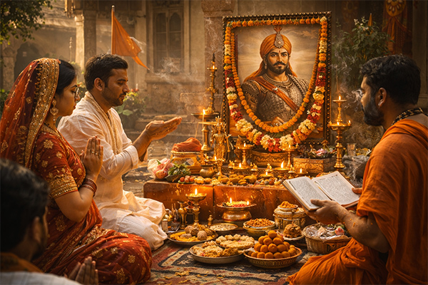 - Invocation and Chanting of Prayers – Recite Vedic mantras, Rajput war ballads, and hymns in honor of Maharana Pratap. Chanting 'Rajput Gaurav Stotra' or reading historical accounts of his valor is considered highly auspicious.