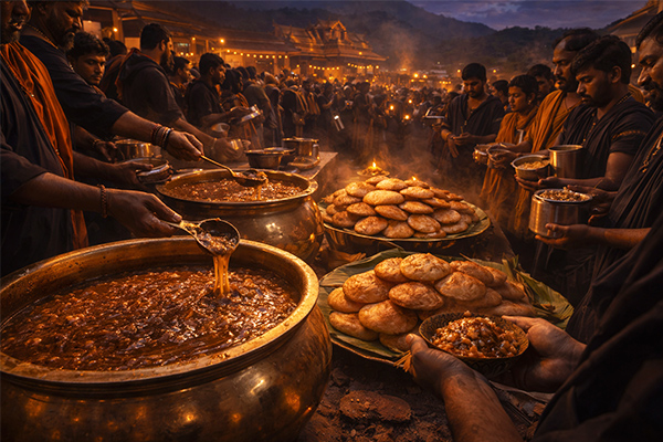 Soft, sweet appams are offered to Ayyappa and later distributed as prasadam. Receiving and consuming this offering is considered auspicious and a symbol of divine nourishment.