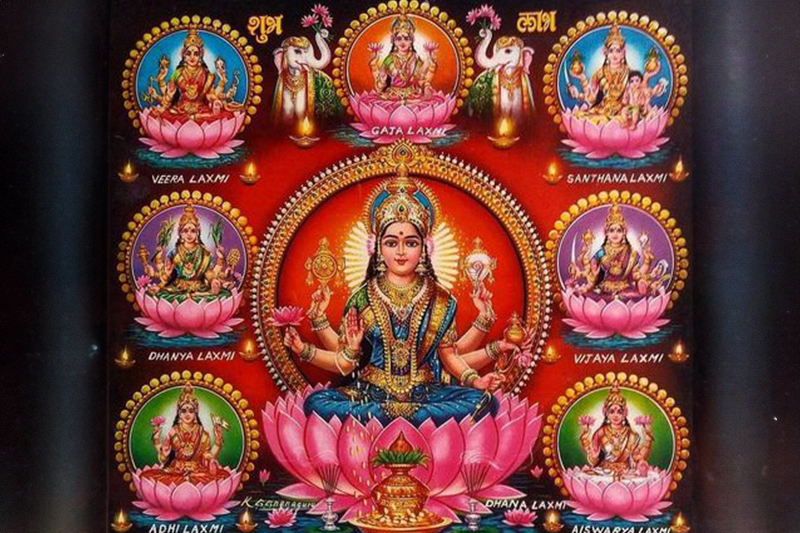 Goddess Mahalaxmi is one of the most revered and worshipped among all Deities. Goddess Mahalaxmi is often worshipped in Her eight forms namely the Ashta Lakshmi. Each of the Ashta Lakshmi namely Aadi Lakshmi, Santhana Lakshmi, Gaja Lakshmi, Dhana Lakshmi, Dhaanya Lakshmi, Vijaya Lakshmi, Veera Lakshmi and Aiswarya Lakshmi represents one form of wealth. Goddess Mahalaxmi is not the only provider of wealth She has many other forms; as Bhoodevi, the earth-goddess She nurtures life, and as Shreedevi. She provides fortune and prosperity.