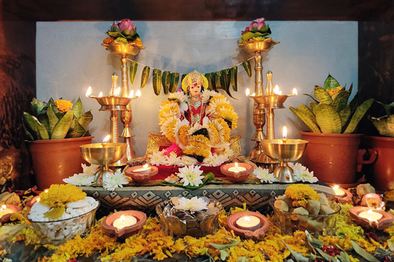 - Install an idol of Goddess Mahalakshmi on a pedestal or a platform where you will perform daily aarti and worship Her.