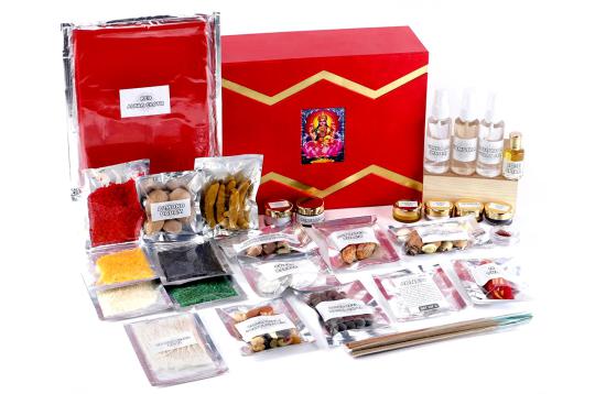 Puja tokri having prasad, energised Rudraksha, silver tabeez, and Laxmi yantra would be sent along. Rudra Centre priests will perform Margashirsha Lakshmi Puja as per Vedic rituals based on birth details.