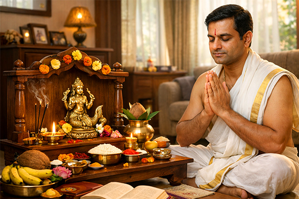 - The puja concludes with aarti and deep daan (offering of lamps), symbolizing surrender to the Divine.