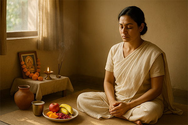 The Meena Sankranti Vrat begins with an early morning bath, symbolizing purification of the body and soul. Devotees cleanse their homes and create a peaceful space for prayer, often decorating the altar with lamps, flowers, and an image of Bhagwan Surya. Before starting the fast, they take a vow ( sankalp ) to observe the vrat with devotion and seek blessings for spiritual growth and prosperity.