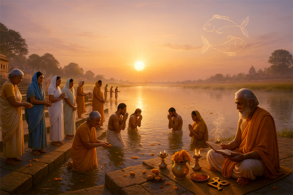 Meena Sankranti Moment is when the Sun enters Pisces triggering spiritual purification, self-reflection, and new beginnings.
