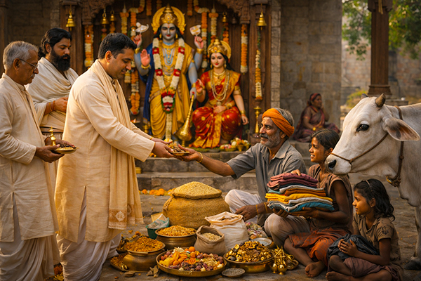 Mesha Sankranti is one of the most auspicious days for donating food, clothes, and essentials to the underprivileged. Offering sesame seeds (til), grains, jaggery, and cows to Brahmins and the needy is believed to bring immense punya (spiritual merit). Many also donate gold and land, following the ancient Hindu tradition of Annadaan (food donation).