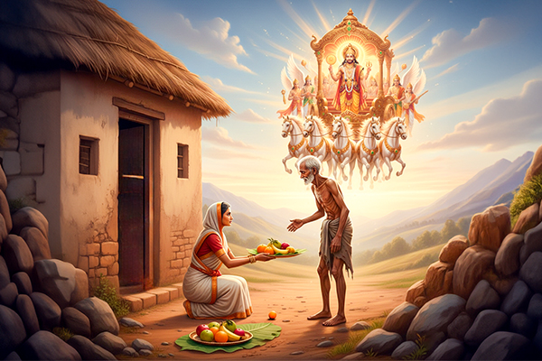 As the days passed, her devotion and kindness reached the heavens. Bhagwan Surya, noticing her sincerity, decided to bless her abundantly. He appeared before her in the form of a radiant golden chariot, accompanied by his celestial servants. The woman, overwhelmed with devotion, offered her prayers to Bhagwan Surya, who, in turn, blessed her with an eternal source of prosperity and health.