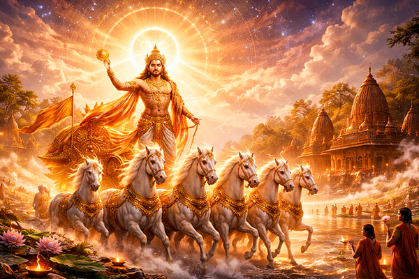 Pilgrimages to Sun temples like Konark in Odisha, Modhera in Gujarat, and Suryanar Kovil in Tamil Nadu are considered highly meritorious on this day. Devotees also worship Bhagwan Vishnu, Goddess Lakshmi, Bhagwan Shiva, and Hanuman, seeking divine blessings for health, wealth, and happiness.
