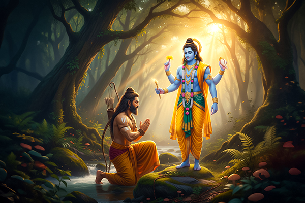 One day, Bhagwan Vishnu, in his divine form, appeared before Bhagwan Parashurama while he was observing his fast. He asked Parashurama why he was performing such an intense spiritual practice. Parashurama explained that he was seeking purification and strength to continue his mission of protecting dharma (righteousness) in the world.