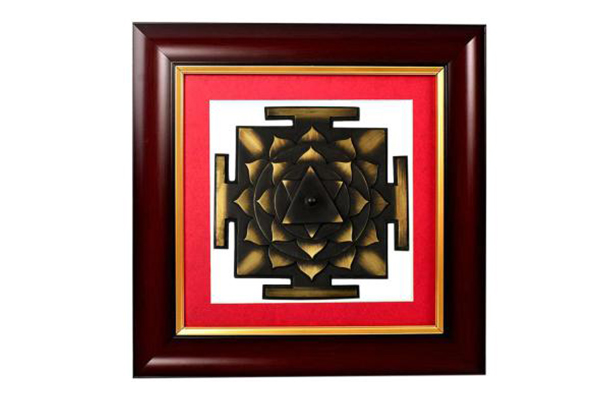 This powerful Yantra is magnificently crafted in elevated three dimensional form in pure copper with antique finish. This Yantra is designed as per authentic texts with accurate geometry of steps in shape of 12 petal lotus followed by circle and again a lotus with 8 petals and circle followed by two reversed triangles forming a star and ultimately leading to focal point for the convergence of the individual soul with creative energy of Bhagwan Vishnu.