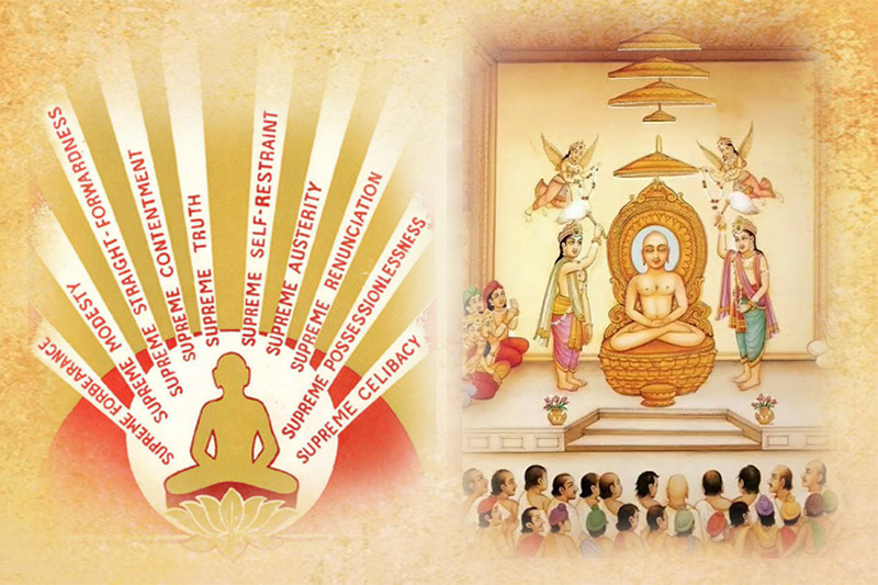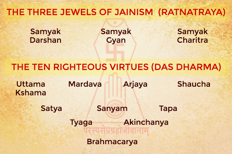 In the Jain scripture, Das Dharma, or the ten righteous virtues such as Uttam Kshama (forbearance), Uttam Mardava (supreme modesty), Uttam Aarjava (straight forwardness), Uttam Satya (truth), Uttam Shoch (purity), Uttam Tap (austerity), Uttam Sanyam (supreme restraint), Uttam Aakinchanya (non-attachment), Uttam Tyaga (renunciation) and Uttam Brahmcharya (supreme celibacy) have been mentioned.