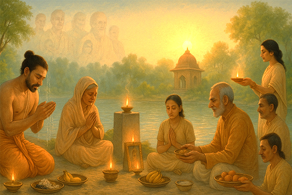 As the king completed the rituals with full sincerity and devotion, a divine vision appeared to him. His ancestors, now at peace, blessed him for performing the rites and assured him that his kingdom would soon prosper. That very year, the rains came, the famine ended, and the kingdom flourished once again. The people of the kingdom celebrated, and the king became known for his wisdom and devotion to his ancestors.
