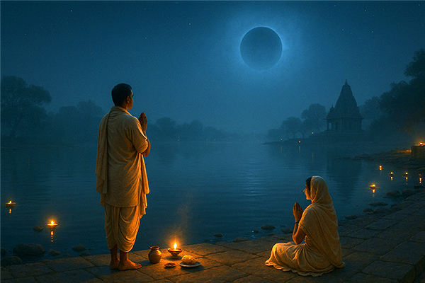 Fasting is a common practice on Phalguna Amavasya, with many devotees choosing to observe a waterless fast (nirjala vrat) or consuming simple foods like fruits and milk. An essential part of the day is honoring one’s ancestors through rituals and offerings, as Phalguna Amavasya is especially significant for ancestral worship. Devotees may light a lamp in memory of their ancestors and pray for their continued protection and peace. Acts of charity are also strongly encouraged on this day; donating food, clothes, or money to those in need is considered highly auspicious and helps accumulate spiritual merit.