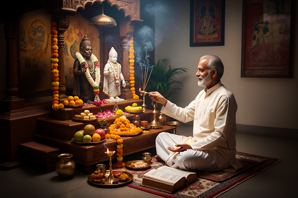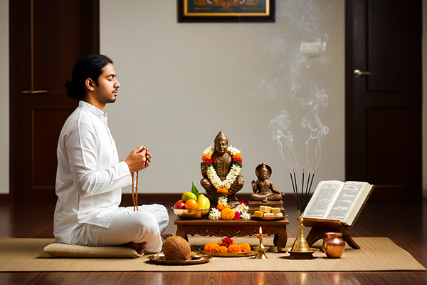- Preparation : Begin by cleaning the puja space and setting up a clean altar. Place an image or idol of Sri Ramanujacharya and Bhagwan Vishnu on the altar. Arrange offerings such as fresh flowers, fruits, sweets, and a lighted lamp or incense.