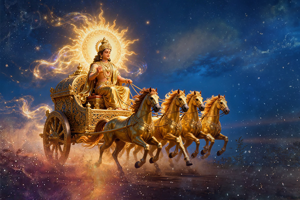 The seven horses that draw Surya Dev's Ratha have great significance. The seven horses represent the Sun's seven rays, the rainbow's seven colors, and the week's seven days, beginning Sunday, or Ravivaar. The seven chakras are linked to the seven rays. Most importantly, Surya Dev's Ratha's seven horses represent the mind. Charioteer Aruna controls the seven horses to ensure equal care. Philosophically, it means controlling one's mind and thoughts. Ancient Indian texts have many symbolic meanings for Surya Dev with seven horses.