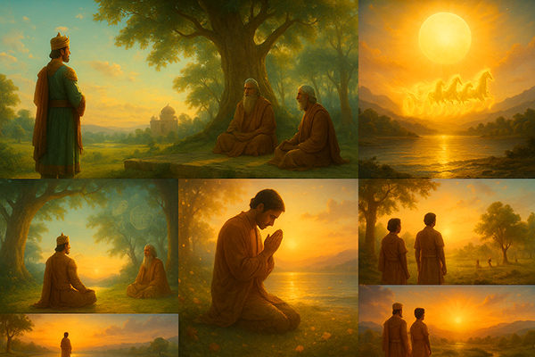 Once upon a time, in a kingdom blessed with prosperity yet shadowed by sorrow, lived King Yashovarman, a noble and just ruler. Despite his wisdom and devotion, the king carried a deep yearning in his heart—he was childless. His days were filled with prayers, yet no heir graced his lineage. Overcome with despair, he sought guidance from the sages of his court. The learned sages, wise in the ways of the cosmos, revealed the power of Bhagwan Surya, the Sun God, who could grant blessings of vitality, abundance, and new beginnings.
