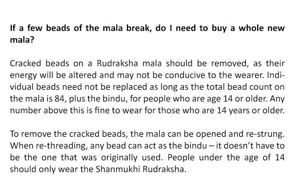 Normally as per our ancient scriptures it is recommended to wear 108 beads mala with one extra bead as bindu/guru/sumeru. Although any number of beads can be worn, the Mala should have a bindu bead. However they are promoting fake information by stating that individuals under the age of 14 should only wear 6 mukhi Rudraksha. Anyone can wear any Rudraksha regardless of their age.