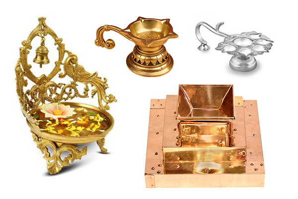Rudra Centre brings an extensive collection of Puja Articles which caters to all that is required for daily and special Puja Vidhis. We offer variants of designs and sizes in each category. The list includes handcrafted Puja Mandirs, Puja Pedestals, offering Bowls, Panchpatra, intricately carved Puja Thalis, Abhishek Vessels, in different materials, Pure Silver/German Silver articles like Kalash, set of Shodash Upachara and Several other Puja Articles, which we deliver at your doorstep.