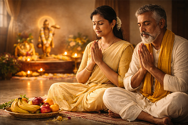 Devotees offer food, clothes, and donations to Brahmins and the needy. Offering yellow-colored items like turmeric, bananas, or gold is considered particularly auspicious. Feeding cows and distributing prasadam among family and devotees further enhances the blessings of the day.