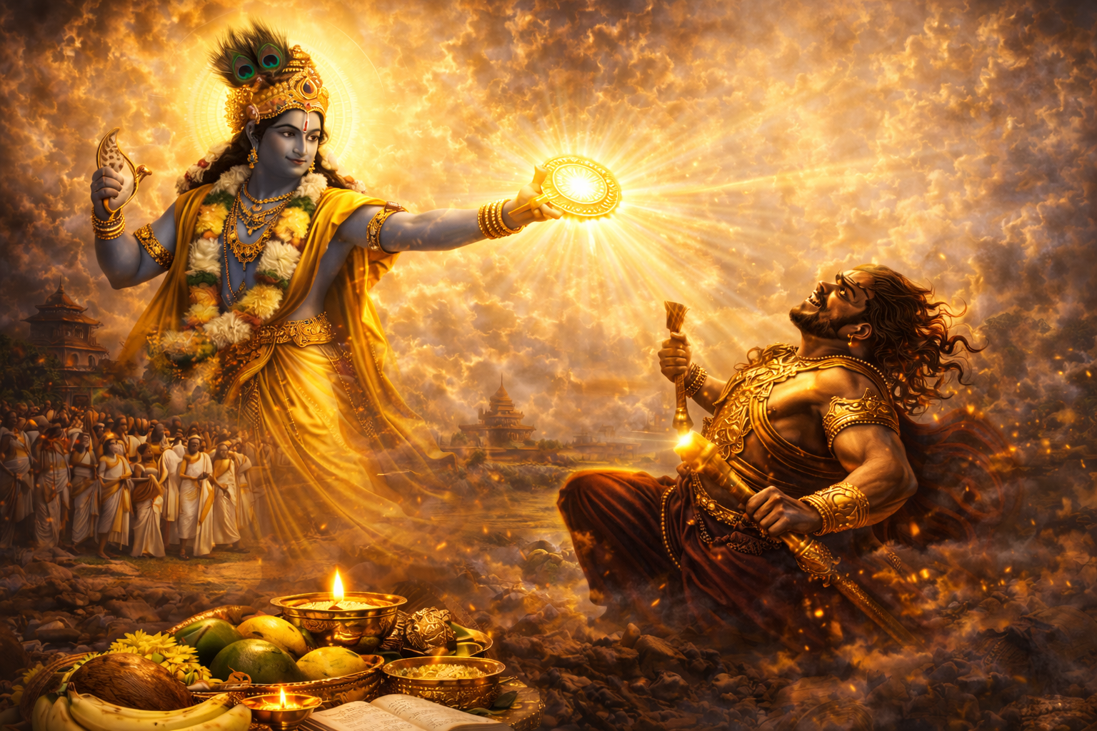 According to the story, it is believed that the divine presence of Bhagwan Vishnu is invoked as the Vishu Kani is viewed for the first time on Vishu morning. This sight, symbolizing the victory of light over darkness, is seen as a promise of blessings for the year ahead. The ritual serves as a reminder that the world is governed by cosmic balance, and that by honoring divine grace and seeking prosperity with sincerity, one can align with the flow of cosmic energy.