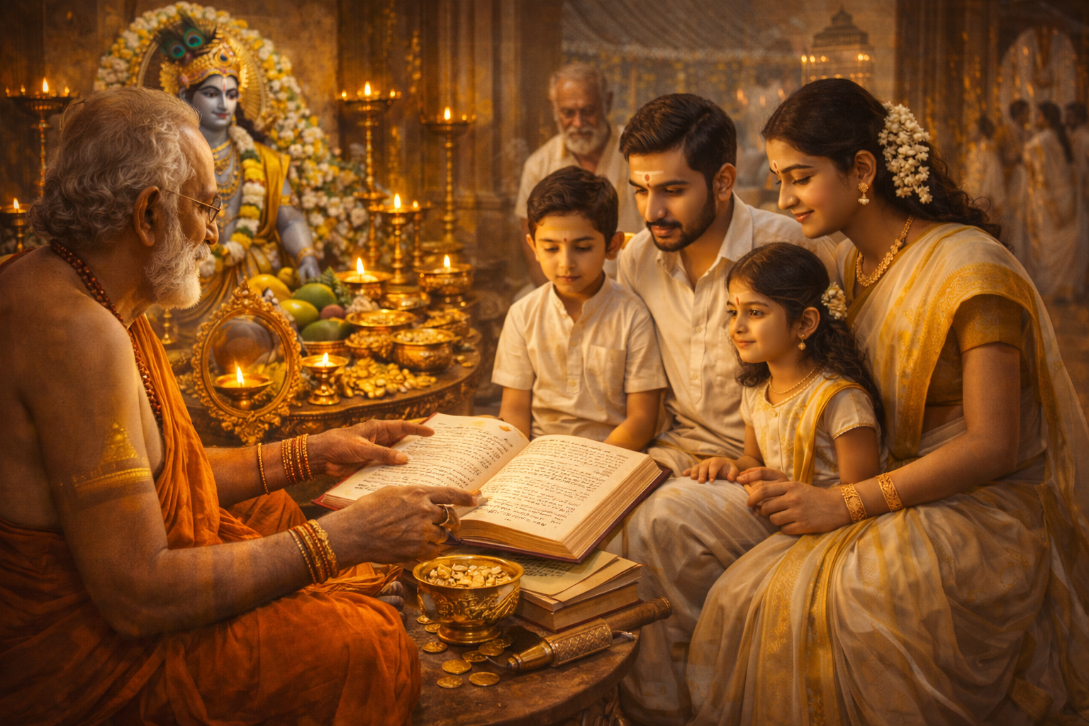 Vishu Phalam, which translates to ‘prediction for the upcoming year’, holds great significance as part of the Vishu festival, particularly in Kerala, Andhra Pradesh, Karnataka, and among the Malayali diaspora communities worldwide. As an astronomical New Year, Vishu is seen as a highly auspicious time to receive guidance for the year ahead. Traditionally, Vishu Phalam involved an expert astrologer from the community visiting homes, or Illams (traditional Kerala houses), to offer personalized predictions for each family member. These readings were believed to provide insight into one's fortunes and life events for the coming year. In contemporary times, however, Vishu Phalam is typically published in popular Jyotish (astrology) magazines or broadcasted via media, making it easily accessible to a wider audience. Regardless of the medium, the tradition of Vishu Phalam continues to be an integral part of the festival, offering a glimpse into the future and reinforcing the cultural and spiritual status of Vishu.