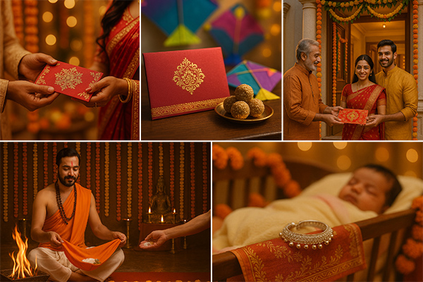 From Upanayana (sacred thread ceremony) and Griha Pravesh (housewarming) to Antyeshti (funeral rites), Shagun is offered at each major life passage to mark the moment with sacred energy and responsibility.