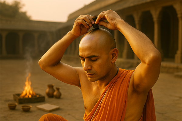 In Agamic and Smriti-based traditions, the act of tying the Shikha before rituals is seen as part of entering a ritual state of awareness, where the ego is minimized, and the body becomes a vessel for invoking divine presence.