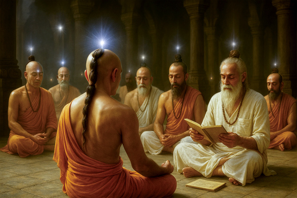 The presence of the Shikha marks the individual as someone dedicated to the path of Dharma, particularly those who are initiated into Vedic study or priestly duties. Just as a monk's robe or a sacred thread distinguishes one's role, the Shikha visually identifies a person as a seeker of higher knowledge, a student of the Vedas, or a devotee aligned with Sanatana Dharma.
