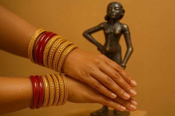 Archaeological discoveries from the Indus Valley Civilization, especially at Mohenjo-Daro, reveal that women wore bangles even around 2600 BCE. A famous bronze statue of a dancing girl shows bangles stacked along her arms, proving that this custom has ancient roots.