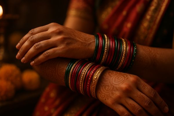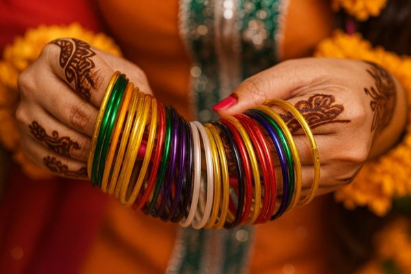 Across India, from bustling cities to quiet villages, you will find women adorned with colourful glass, gold, silver, or conch shell bangles. They are not just ornaments. They are symbols of tradition, energy, protection, and blessings.