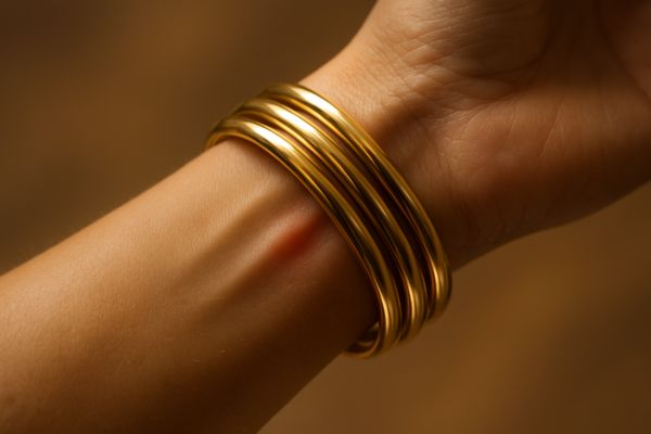 The continuous movement of bangles on the wrist is thought to create friction, which may stimulate blood circulation. This gentle stimulation is believed to help in maintaining energy levels and reducing stress.