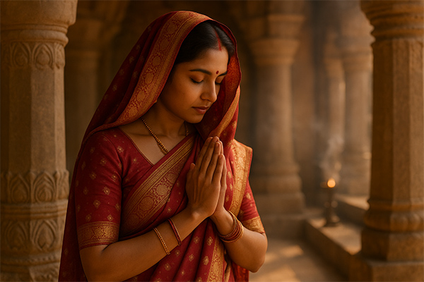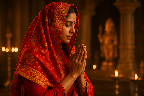 In many Hindu communities, covering the head during worship is a quiet gesture of respect and devotion. It reflects the cultural values of humility, discipline, and modesty before the Divine.