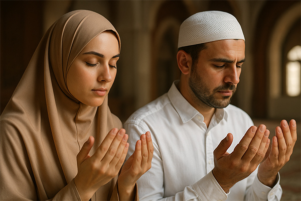 In Islamic tradition, both men and women cover their heads while offering prayers. Women wear the hijab, and men often use a cap (taqiyah) to express modesty and submission to Allah.