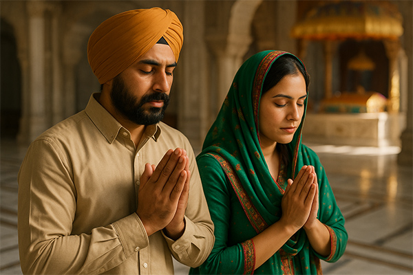 Covering the head is mandatory in Sikhism. Men wear turbans, and women use scarves or dupattas, especially when entering the Gurdwara (temple) or during prayers.