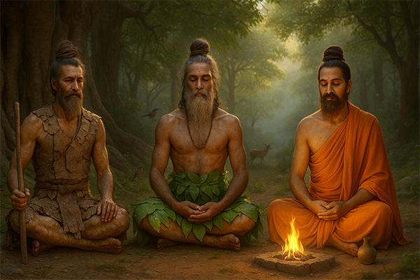 Even in the Ramayana and Mahabharata, sages and forest-dwelling rishis are described wearing ochre or bark-coloured robes, representing their choice to live close to nature, away from society, focused solely on Tapas (austerity) and Dhyana (meditation).