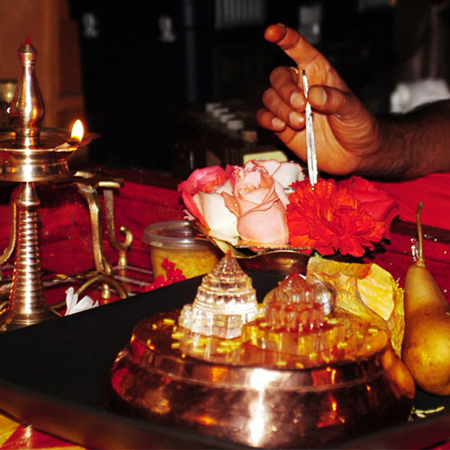 - Once this is done wipe, the Yantra with a soft cloth and place it back at the altar.