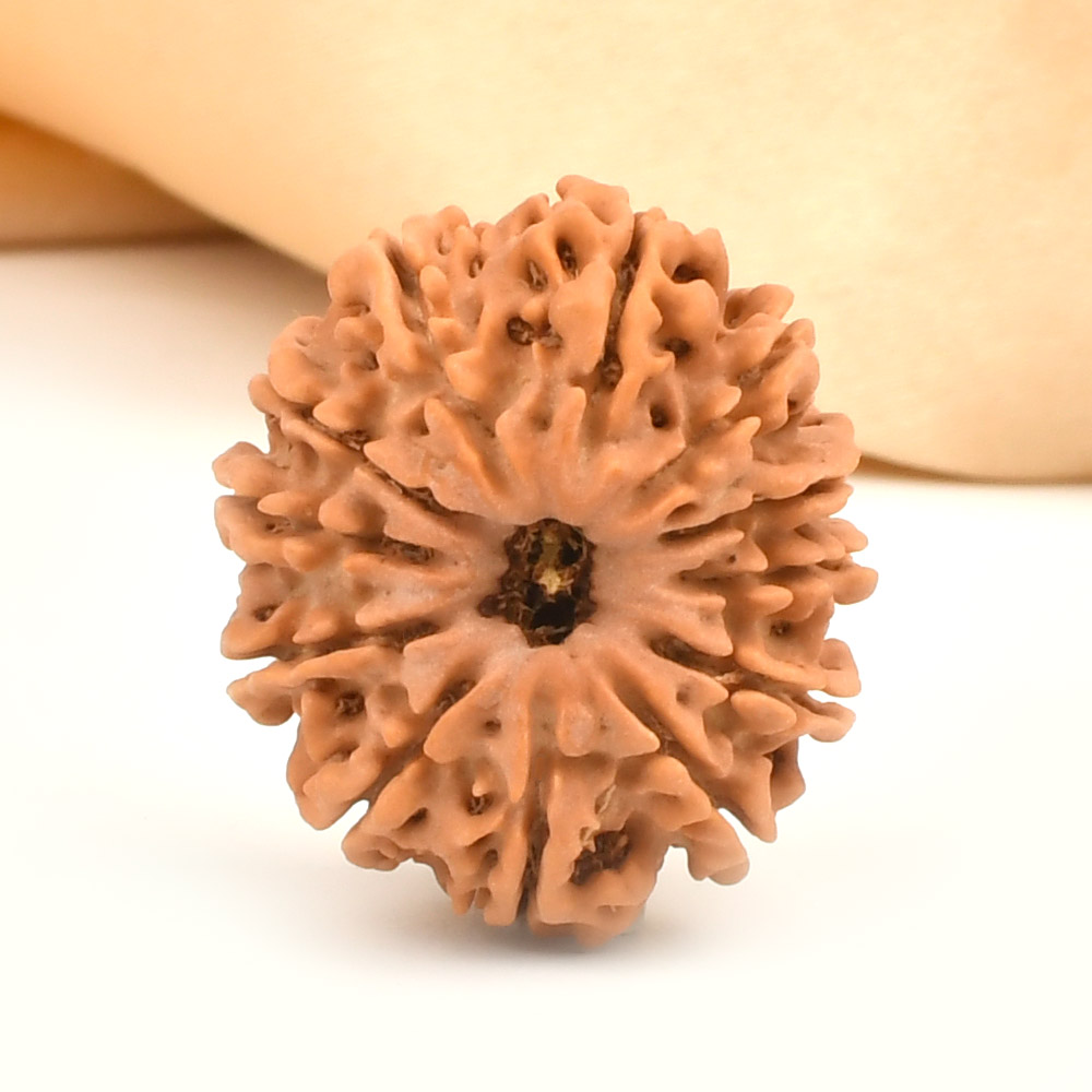 The 12 Mukhi Rudraksha embodies the energy of the Surya Deva and empowers the wearer with qualities of the Sun like authority, brilliance, and influence. It provides relief from stress and anger rooted in feelings of victimization, worries, suspicion, fear of the future, dependency, and low self-respect. The wearer gains personal power, drive, vigor, excellent health, and a commanding presence. This Rudraksha fosters leadership qualities, visionary abilities, and the motivation to take decisive action leading in achievements that bring name, fame, success, and recognition. Additionally, it supports overall health and aids in better digestion.