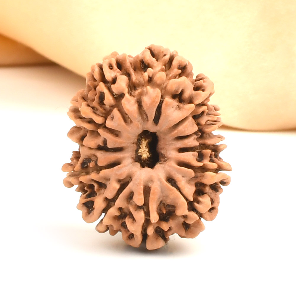 The 12 Mukhi Rudraksha embodies the energy of the Surya Deva and empowers the wearer with qualities of the Sun like authority, brilliance, and influence. It provides relief from stress and anger rooted in feelings of victimization, worries, suspicion, fear of the future, dependency, and low self-respect. The wearer gains personal power, drive, vigor, excellent health, and a commanding presence. This Rudraksha fosters leadership qualities, visionary abilities, and the motivation to take decisive action leading in achievements that bring name, fame, success, and recognition. Additionally, it supports overall health and aids in better digestion.