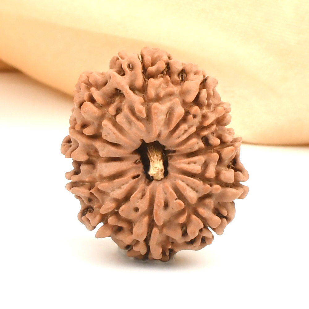 The 12 Mukhi Rudraksha embodies the energy of the Surya Deva and empowers the wearer with qualities of the Sun like authority, brilliance, and influence. It provides relief from stress and anger rooted in feelings of victimization, worries, suspicion, fear of the future, dependency, and low self-respect. The wearer gains personal power, drive, vigor, excellent health, and a commanding presence. This Rudraksha fosters leadership qualities, visionary abilities, and the motivation to take decisive action leading in achievements that bring name, fame, success, and recognition. Additionally, it supports overall health and aids in better digestion.