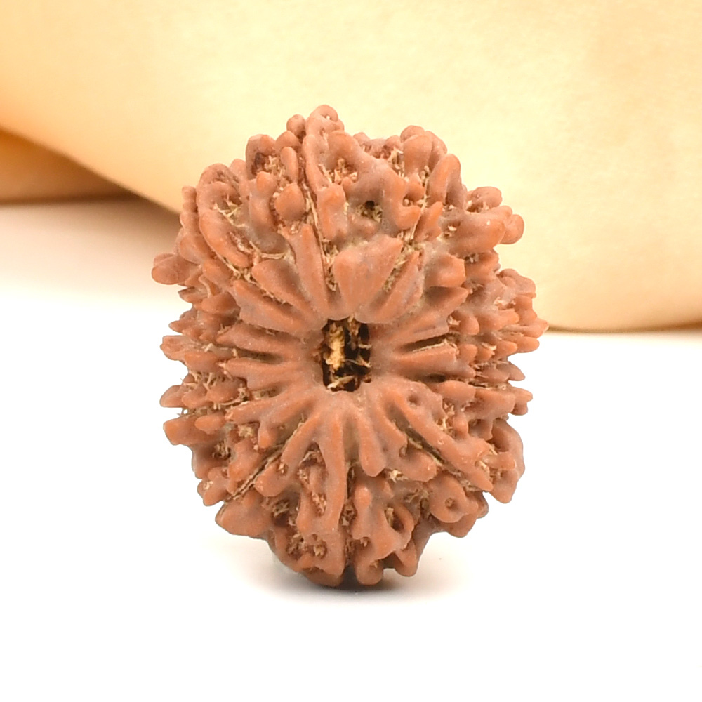 The 12 Mukhi Rudraksha embodies the energy of the Surya Deva and empowers the wearer with qualities of the Sun like authority, brilliance, and influence. It provides relief from stress and anger rooted in feelings of victimization, worries, suspicion, fear of the future, dependency, and low self-respect. The wearer gains personal power, drive, vigor, excellent health, and a commanding presence. This Rudraksha fosters leadership qualities, visionary abilities, and the motivation to take decisive action leading in achievements that bring name, fame, success, and recognition. Additionally, it supports overall health and aids in better digestion.