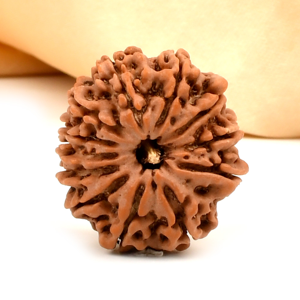 The 12 Mukhi Rudraksha embodies the energy of the Surya Deva and empowers the wearer with qualities of the Sun like authority, brilliance, and influence. It provides relief from stress and anger rooted in feelings of victimization, worries, suspicion, fear of the future, dependency, and low self-respect. The wearer gains personal power, drive, vigor, excellent health, and a commanding presence. This Rudraksha fosters leadership qualities, visionary abilities, and the motivation to take decisive action leading in achievements that bring name, fame, success, and recognition. Additionally, it supports overall health and aids in better digestion.