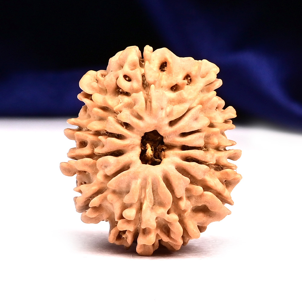 The 12 Mukhi Rudraksha embodies the energy of the Surya Deva and empowers the wearer with qualities of the Sun like authority, brilliance, and influence. It provides relief from stress and anger rooted in feelings of victimization, worries, suspicion, fear of the future, dependency, and low self-respect. The wearer gains personal power, drive, vigor, excellent health, and a commanding presence. This Rudraksha fosters leadership qualities, visionary abilities, and the motivation to take decisive action leading in achievements that bring name, fame, success, and recognition. Additionally, it supports overall health and aids in better digestion.